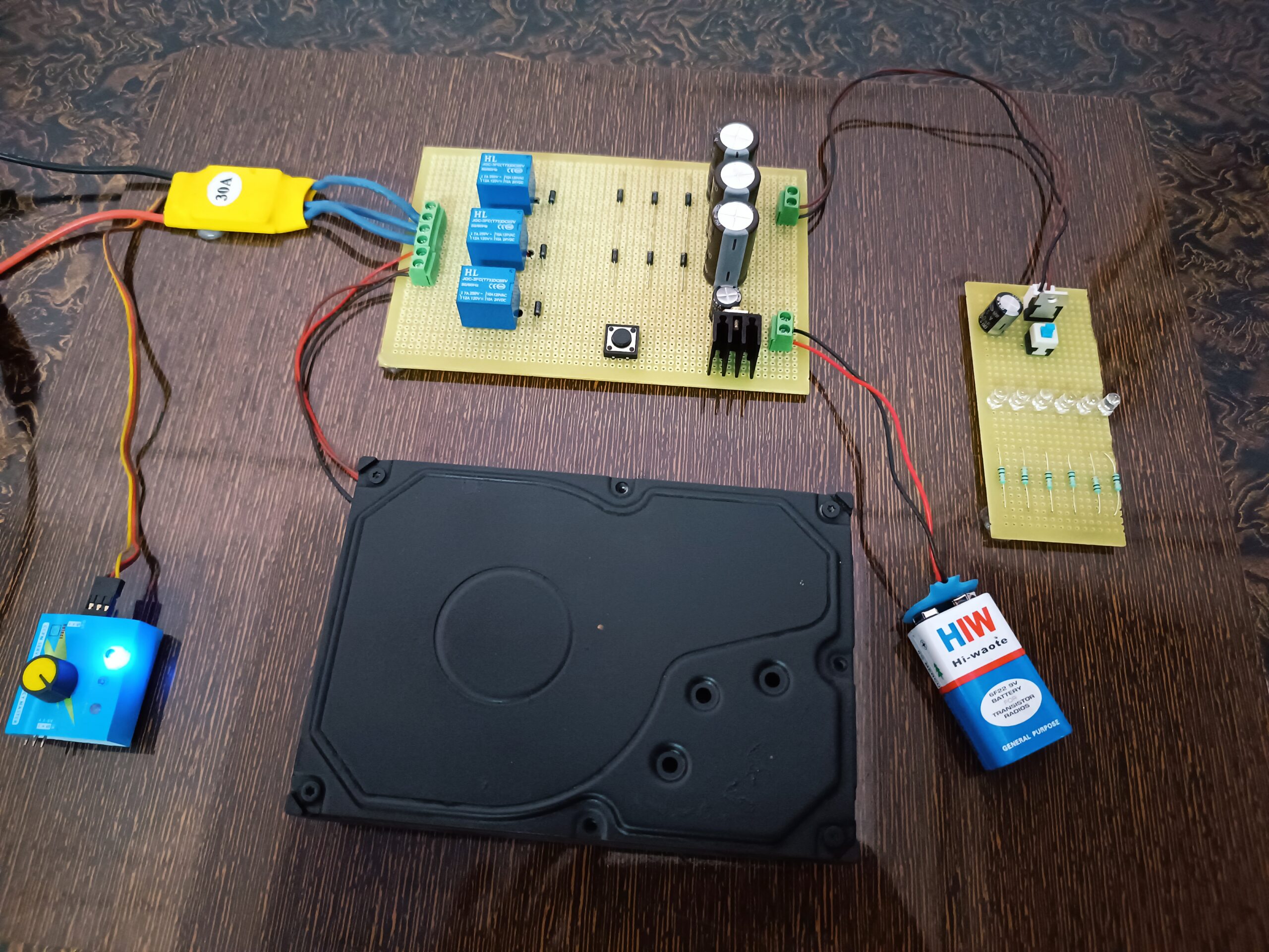 When powered, the BLDC motor runs the load normally. A power control circuit drives the motor through MOSFET-based switching or ESC (Electronic Speed Controller). -